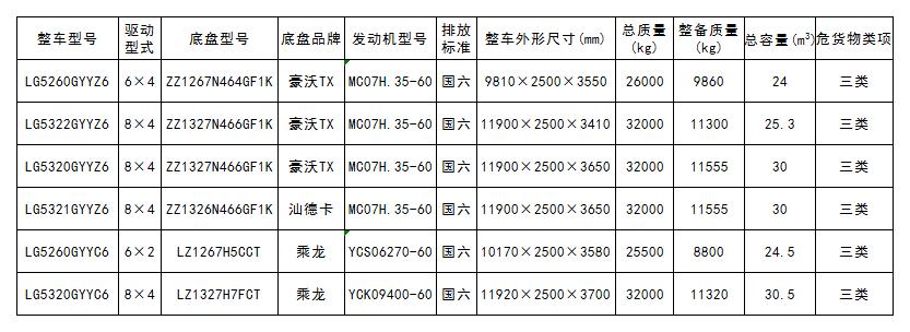 鋁合金運油車產品參數(截止至工信部第354批公告)