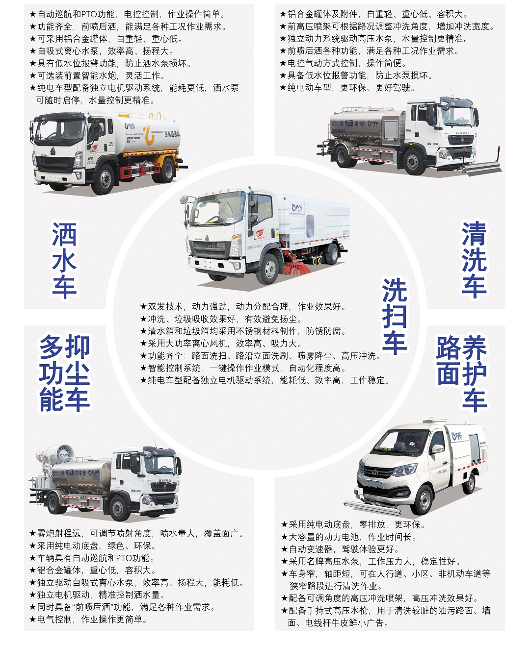 運力牌灑水抑塵洗掃類環衛車有灑水車(綠化噴灑車)、清洗車、多功能抑塵車、路麵養護車和洗掃車共五大類,車型種類多,滿足各類需求。灑水車、清洗車、yichenchekecaiyonglvheguanti,zizhongqing,rongjida,lianxuzuoyelichengchang,jienengshengyou。cheliangzidonghuachengdugao,gongnengqiquan,caozuojianbian,shiyongxiaolvgao,shichengshisashui、洗掃、降塵作業的理想選擇。