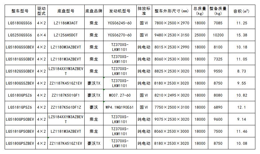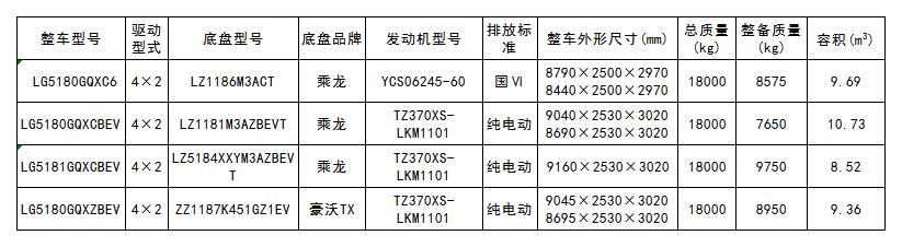 灑水車產品參數(截止至工信部第354批公告)