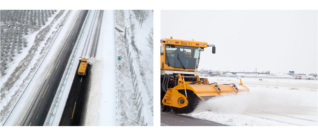 機場跑道三合一除雪車 ·底盤:雙發動機4×4專用三合一底盤,拱形大梁結構 ·主發動機:438-550 馬力,康明斯、卡特、沃爾沃 排放:中國道路國六,中國非道路國三、國四,EU StageⅢB、V、VI,US T3、T4F ·副發動機:500-650 馬力,康明斯、卡特、沃爾沃 排放:中國非道路國三、國四,EU Stage V、VI,US T3、T4F ·變速箱:美國艾利遜液力變矩器自動變速箱,6前進擋,1後退檔 ·轉向模式:4×4計算機控製四輪轉向(蟹行、四輪、後輪、前輪) ·懸掛模式:油氣懸掛,可以鎖定 ·推鏟寬度:5.6米,  6.4米 ·滾刷寬度:4.2 米(4.9米), 4.9米(5.6米), 5.6米(6.3米) ·滾刷直徑:914 毫米 ·滾刷轉速:0-700 轉/分鍾,0-900 轉/分鍾 ·滾刷扭矩:1,600-2,500 牛·米 ·滾刷擺角:32°,35° ·插條式刷苗,材質:全聚丙烯、全彈性鋼絲、聚丙烯和彈性鋼絲交替混合 ·最高車速:65 公裏/小時,80 公裏/小時 ·除雪速度:3-45 公裏/小時 ·最低穩定速度:3 公裏/小時 ·吹雪鼓風機最高風速:160 米/秒 ·吹雪鼓風機最高風量:5 萬立方米/小時 ·轉彎半徑:9.5 米