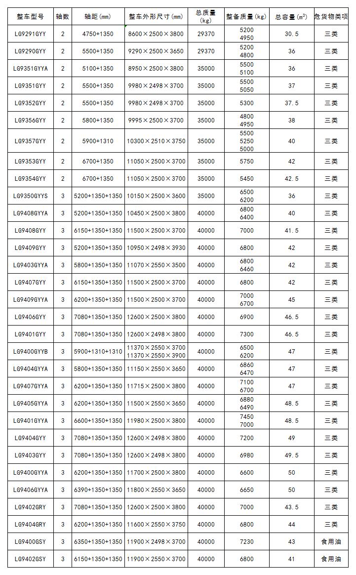 鋁合金運油車產品參數(截止至工信部第354批公告)