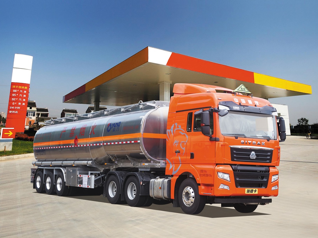 運力牌鋁合金罐式運輸車,采用優質鎂鋁板材、選裝空氣懸掛及鋁合金輪轂,歐標裝卸油係統及油氣回收係統等,自重輕、環保、安全、節能、高效。