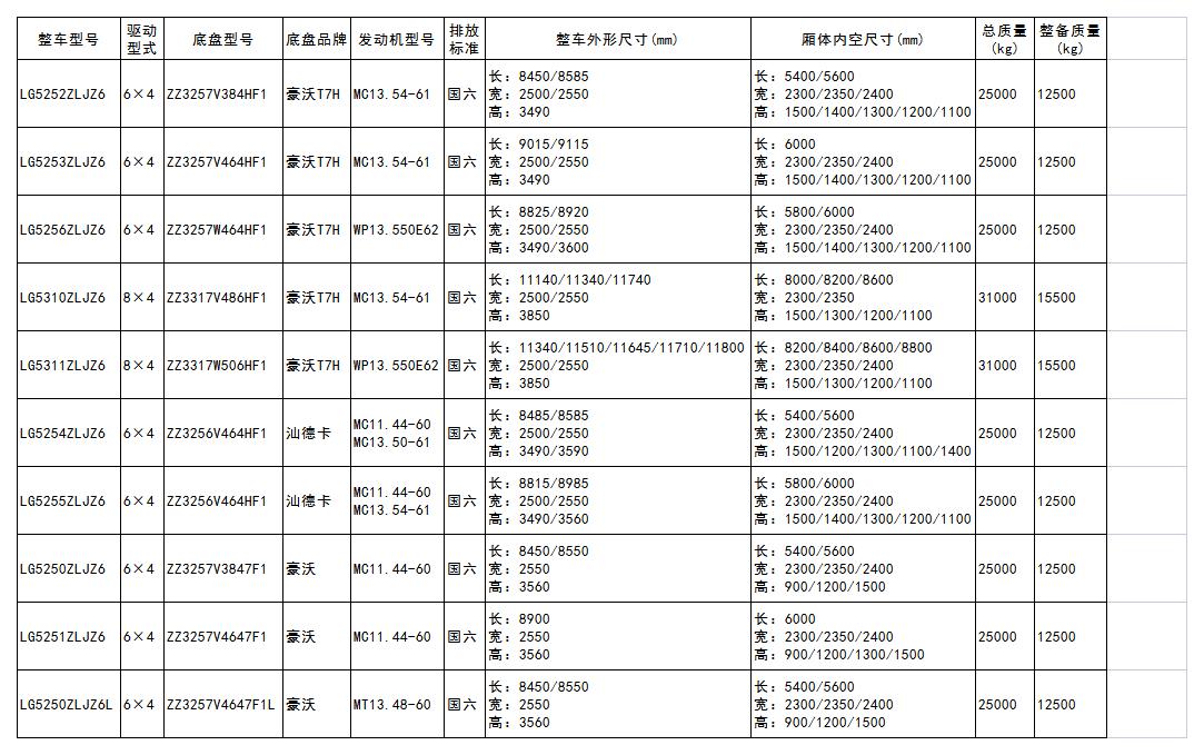 自卸車產品參數(截止至工信部第354批公告)