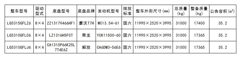 粉粒物料運輸車產品參數(截止至工信部第354批公告)