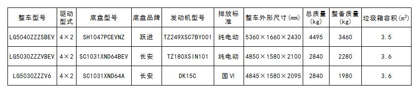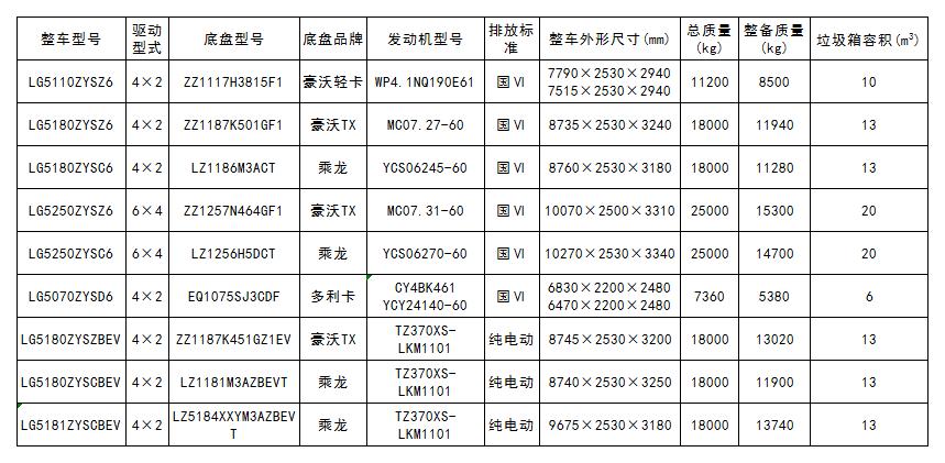 壓縮式垃圾車產品參數(截止至工信部第354批公告)