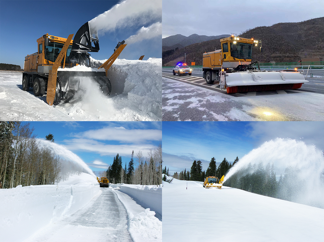 雙發動機拋雪車 ·底盤:雙發動機4×4專用拋雪車底盤 ·主發動機:325-550 馬力,康明斯、卡特、沃爾沃 排放:中國道路國六B,歐洲道路歐六,中國非道路國三,EU StageⅢB,US T3、T4F ·副發動機:550-1500 馬力,康明斯、卡特 排放:中國非道路國三、國四,EU StageⅢB、V、VI,US T4F ·變速箱:美國艾利遜液力變矩器自動變速箱,6前進擋,1後退檔 ·轉向模式:4×4計算機控製四輪轉向(蟹行、四輪、後輪、前輪) ·拋雪能力:5000、6000、7000、8000、10000、12000 噸/小時 ·除雪寬度:2.75、3.0、3.5 米 ·絞龍直徑:1.12、1.32、1.52、2.08米 ·除雪深度:0.02-4 米 ·拋雪距離:3-50 米 ·最高車速:65、80 公裏/小時 ·最高除雪速度:40 公裏/小時 ·最低穩定速度:3 公裏/小時 ·轉彎半徑:7.8、10、15 米 ·選裝1:拋雪頭與滾刷兼容快換方式並增加鼓風機 ·選裝2:油氣懸掛